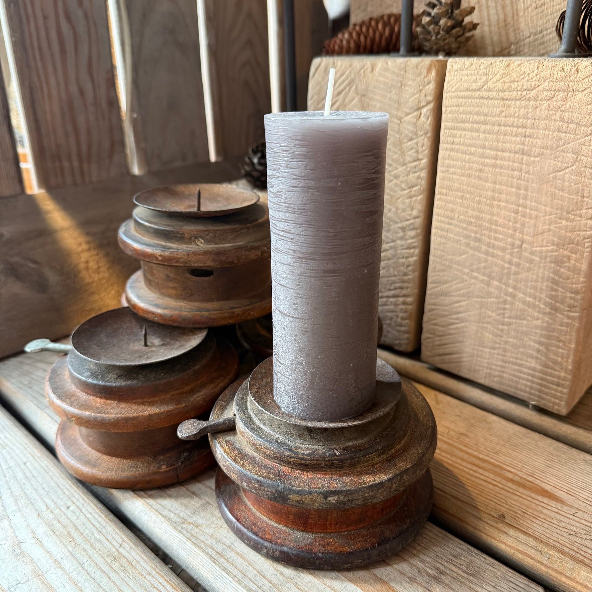 Diese dekorative Holz-Garnspule erhält als stilvoller Kerzenhalter ein neues Leben. Jedes Stück ist ein Unikat mit individueller Patina und natürlicher Holzmaserung – perfekt für ein gemütliches, authentisches Ambiente in Haus oder Garten.