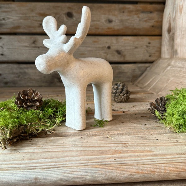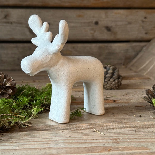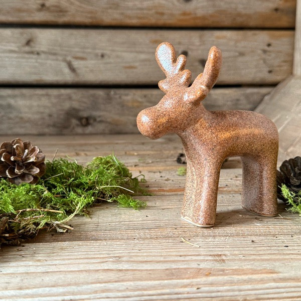 Liebevoll gestaltete Elchfiguren aus Keramik in Weiß oder Kupferbraun. Schlicht, stilvoll und perfekt für die Winter- und Weihnachtszeit.