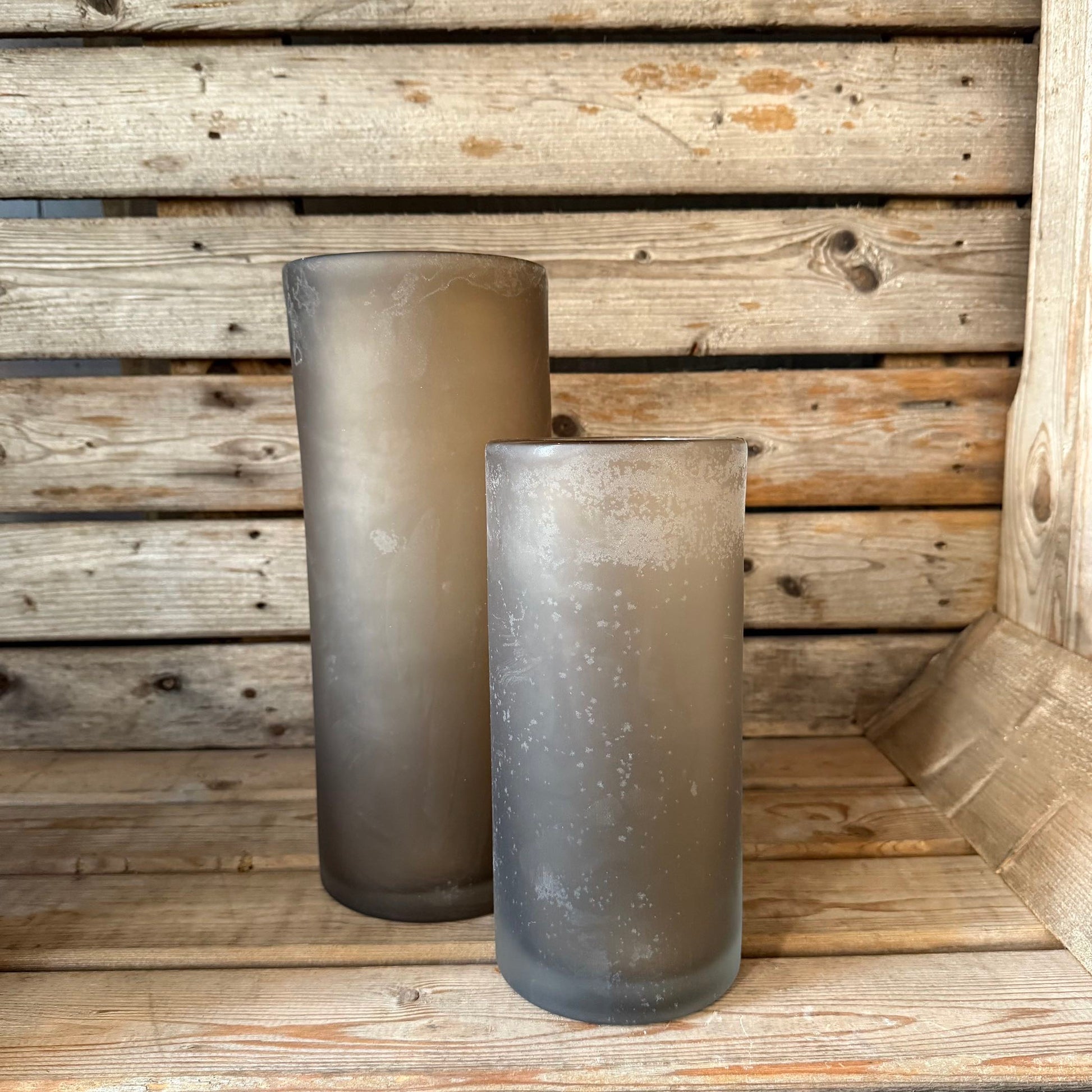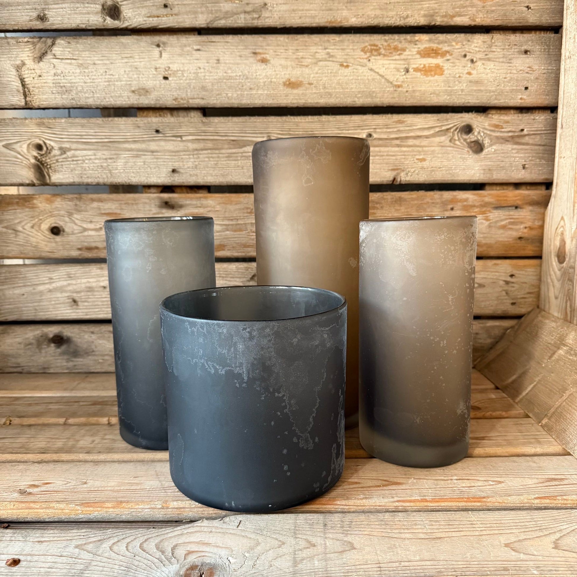 Dekorative Glasvasen in modernem Grau/ Braun mit satinierter Oberfläche. Schlichtes Design, das perfekt zu Blumen, Zweigen oder als stilvolles Einzelstück passt. Harmoniert mit modernem, skandinavischem und industriellem Wohnstil.